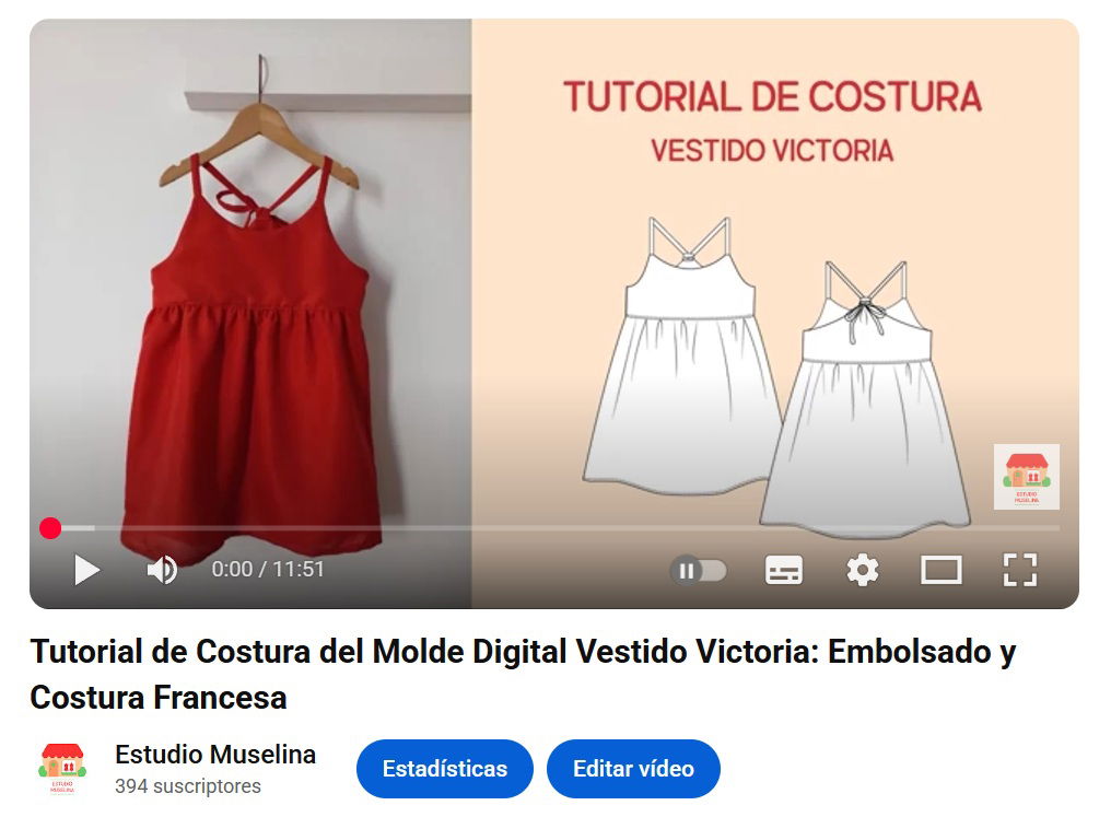 Este producto viene acompañado de un Tutorial detallado en Youtube donde muestro cómo armar el vestido y muchos detalles de confección, es un mini curso ideal si querés aprender a coser, principalmente vestidos de niña.