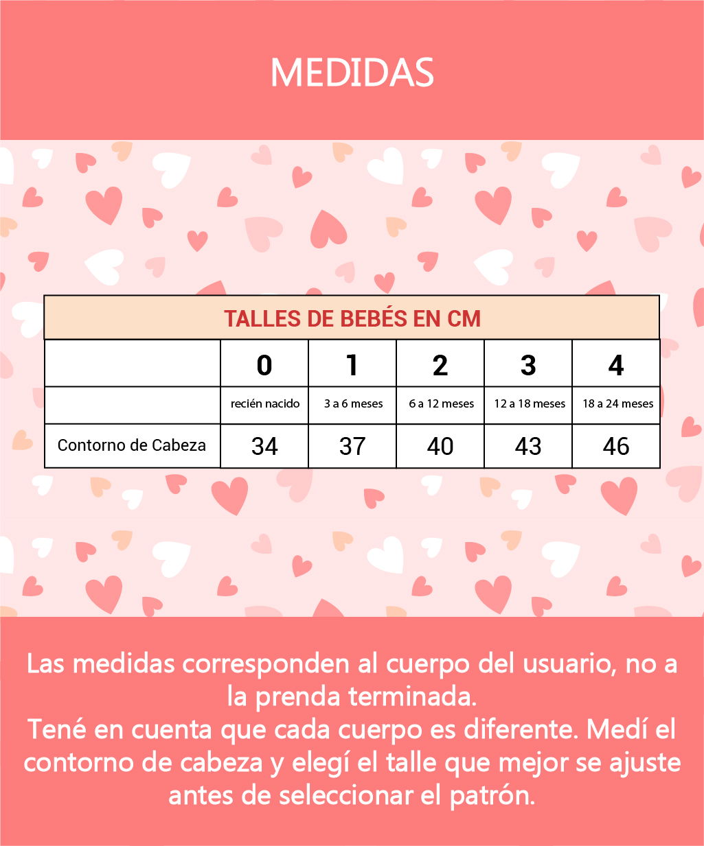Molde digital para confeccionar una boina para bebé, incluye 5 talles agrupados y diferenciados por líneas distintas, luego del armado del plano del molde, se puede recortar un talle o calcar cada talle para tener los 5 separados . Es ideal para emprendedores.