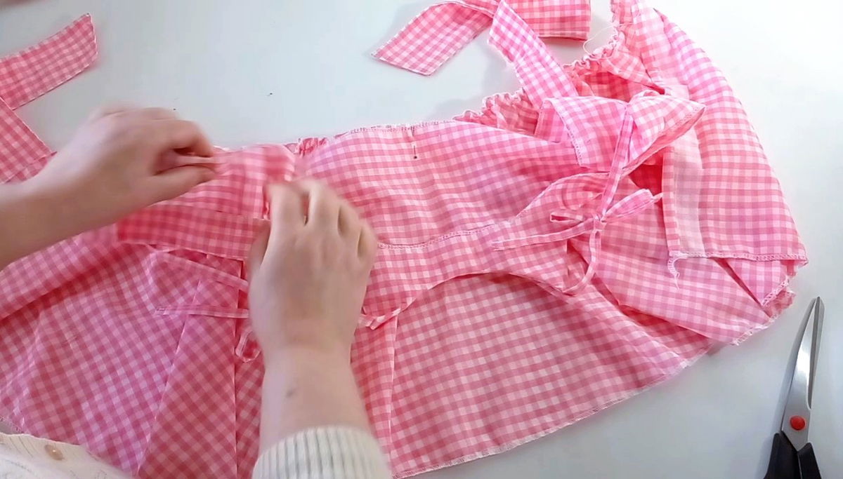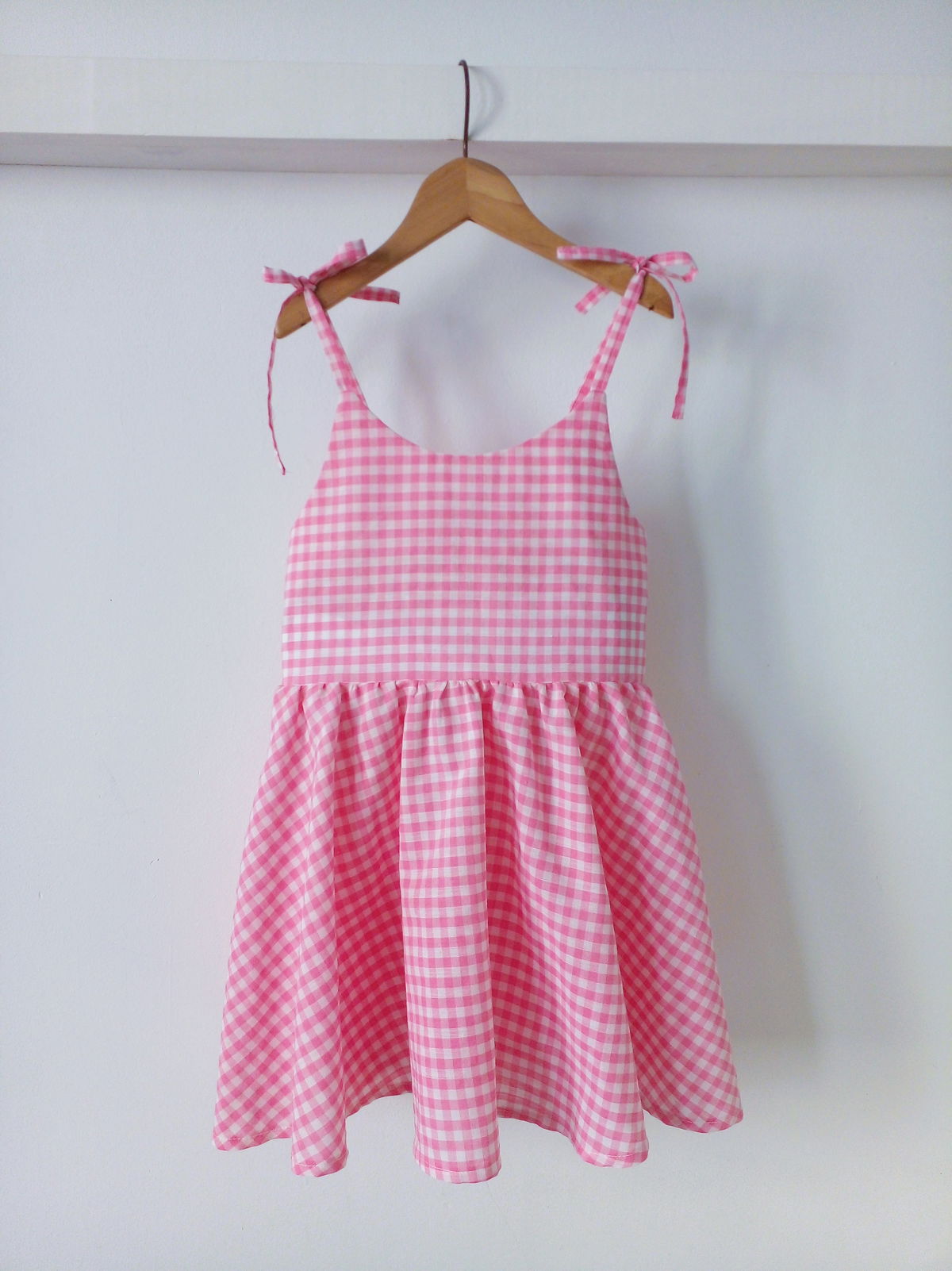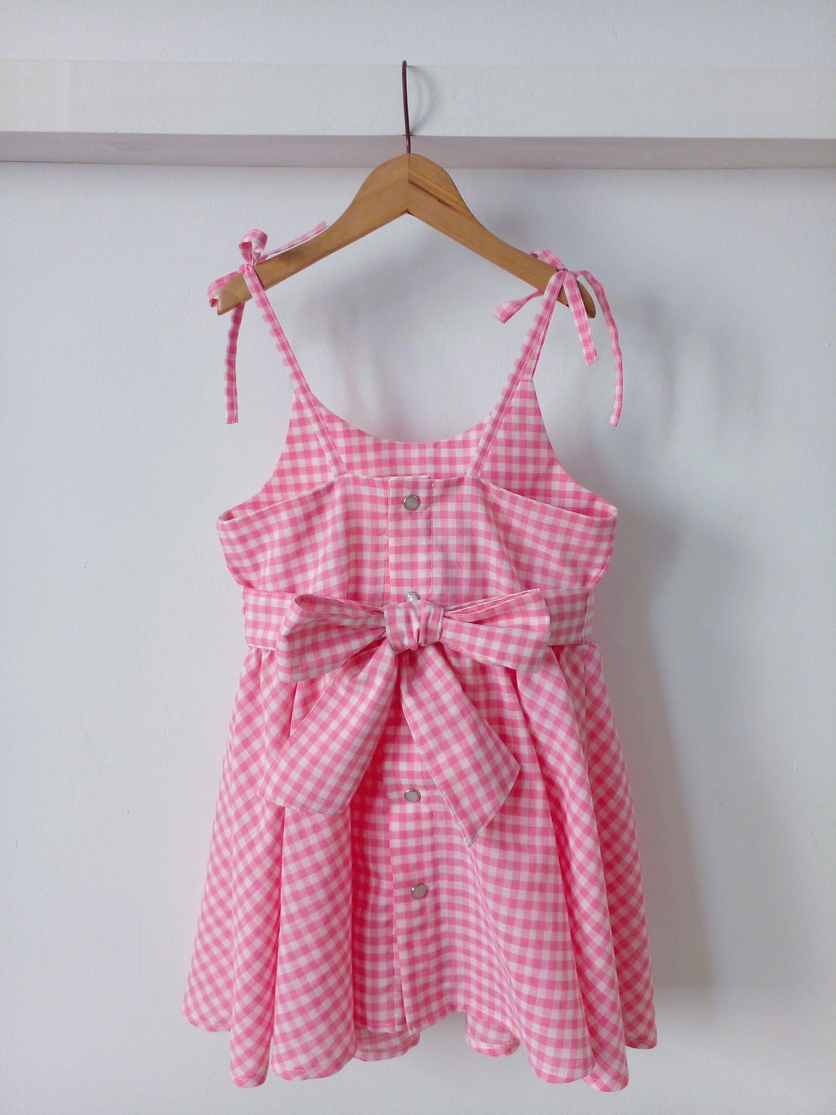 El vestido está inspirado en el icónico vestido de la muñeca Barbie, para ser confeccionado en una tela plana liviana tipo poplín, cloqué, batista, etc. Tiene falda acampanada y fruncida, lleva abotonadura en la espalda y un lazo. En los hombros lleva breteles finos que también se atan. Es de línea entallada, tiene una amplitud de 4 a 6 cm aprox. del contorno de pecho de la tabla de medidas y se puede confeccionar con máquina familiar.