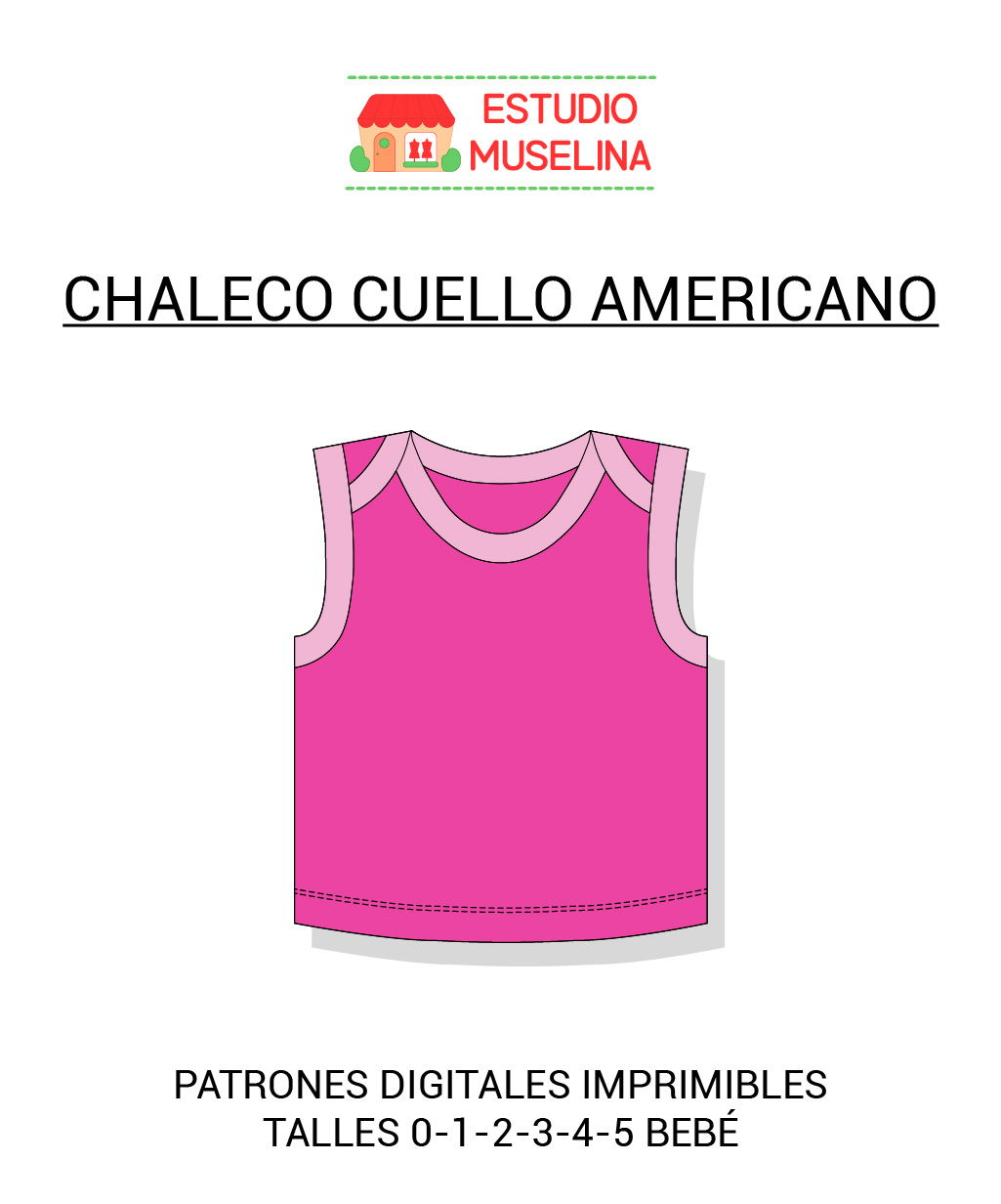 Molde digital para confeccionar un chaleco de bebé, incluye 6 talles agrupados y diferenciados por líneas distintas, luego del armado del plano del molde, se puede recortar un talle o calcar cada talle para tener los 6 separados . Es ideal para emprendedores.