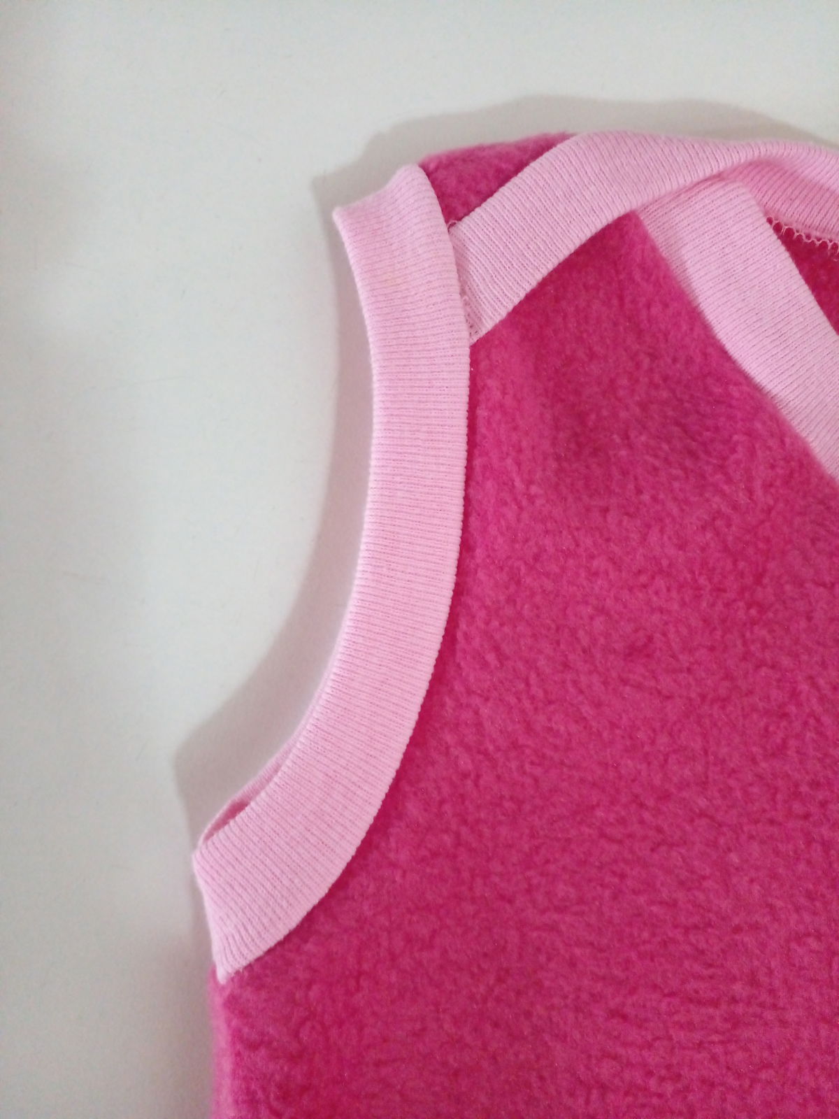 El chaleco está diseñado para confeccionarse en tela de punto (frisa o polar liviano) y viene con las costuras incluidas. Es recto y ajustado al cuerpo, tiene el cuello americano para fácil abertura. los bordes del cuello y las sisas están terminados con un puño de reeb overlockeado, ideal para emprendedores que sólo tienen overlock y recta para confeccionar (NO es un molde que lleve tira de collareta).