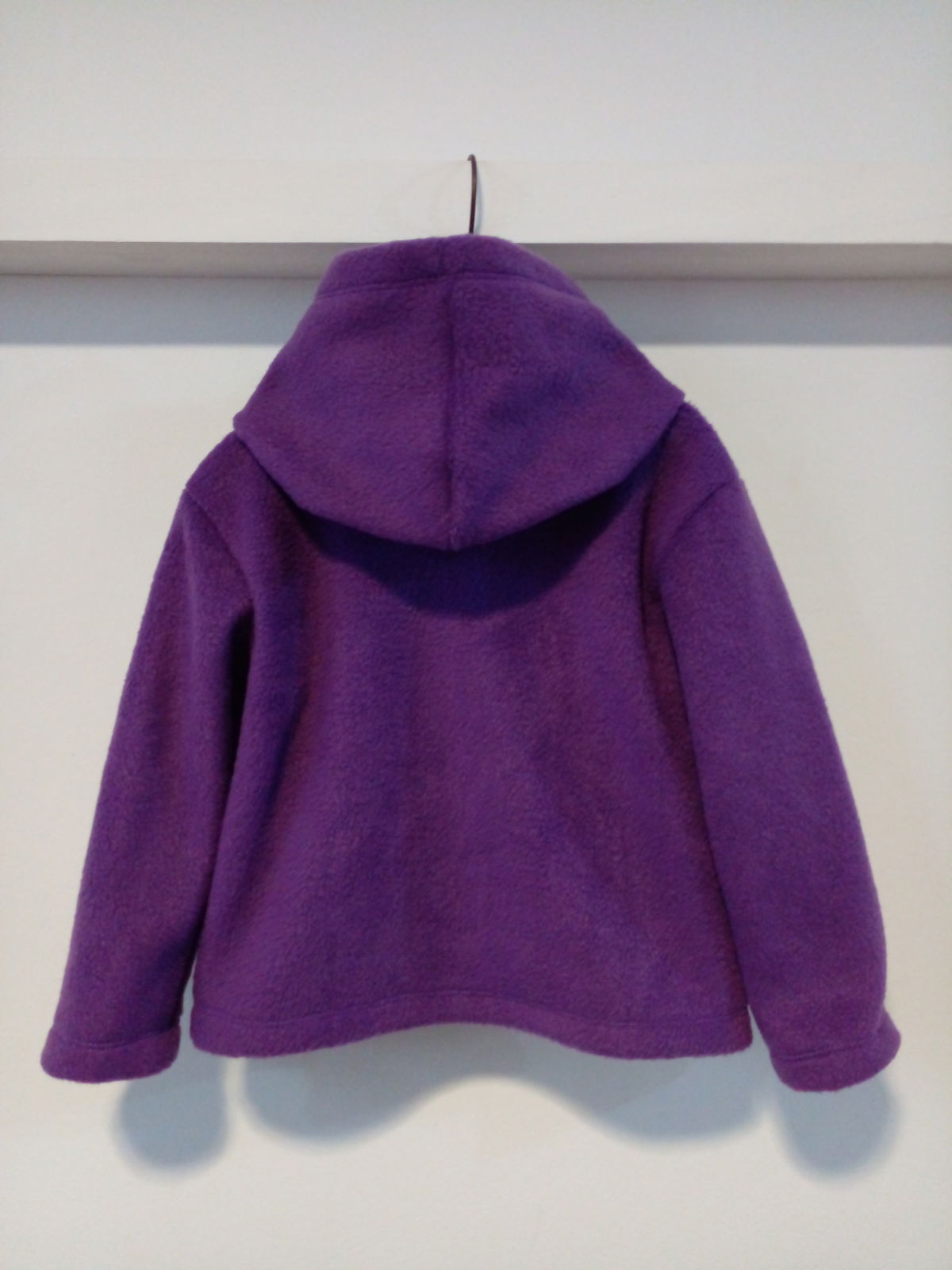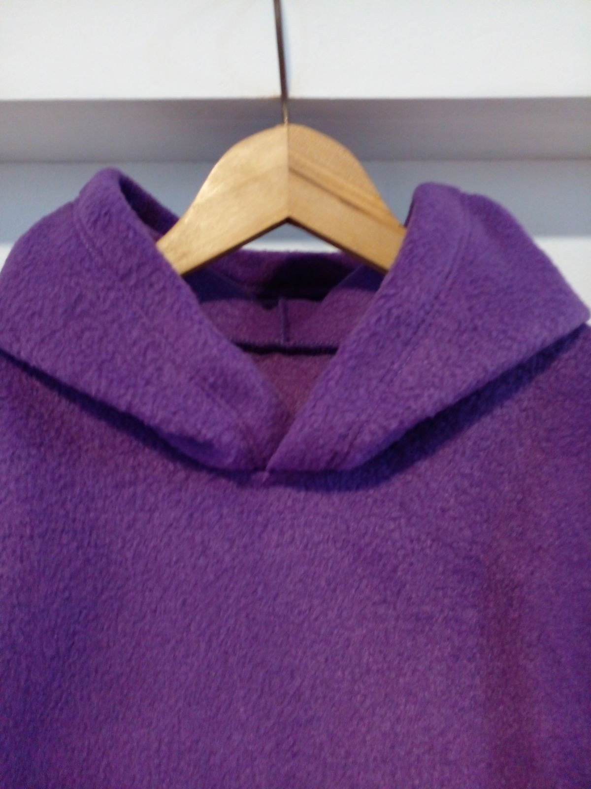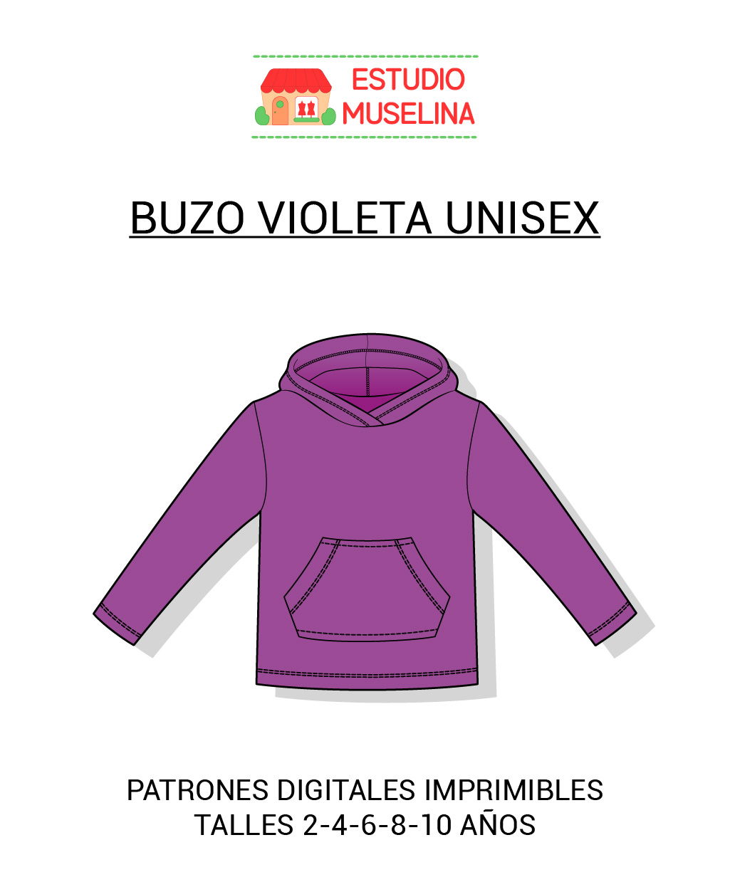 El buzo está diseñado para confeccionarse en tela de punto (frisa, rústico o polar liviano, etc) y viene con las costuras incluidas. Es recto y con capucha, llega a la línea de la cadera, tiene una amplitud de aprox. 10 cm del contorno de pecho de la tabla de medidas, con ruedo y puños dobladillados, así como el orillo de la capucha, viene con un bolsillo central al frente tipo canguro.