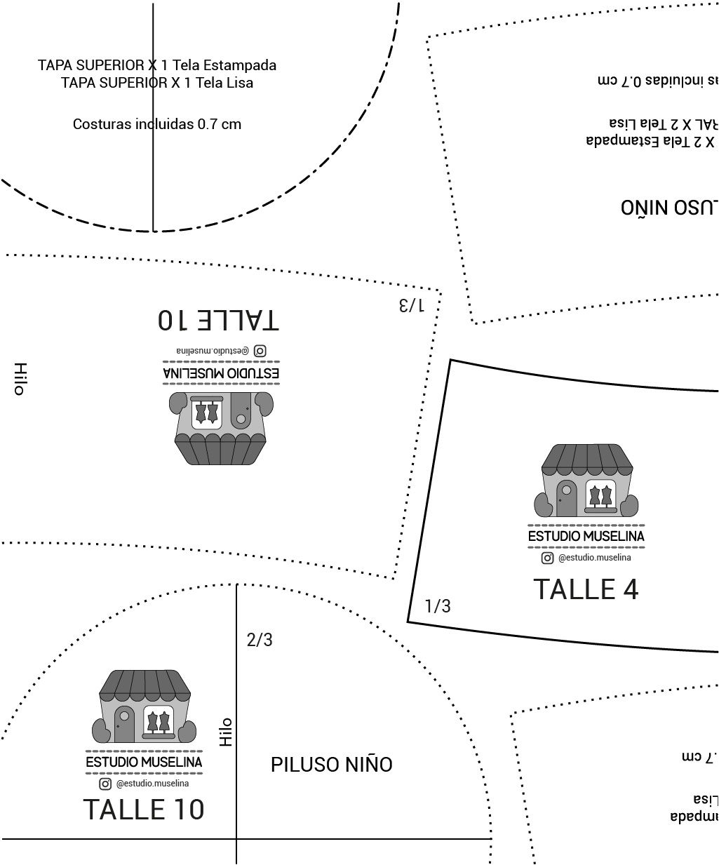 El gorro está diseñado para confeccionarse reversible en tela tipo gabardina, piqué, denim liviano, etc.., se puede armar con dos telas distintas para combinar colores y estampados. En la Ficha de Instrucciones viene un paso a paso del armado (tutorial super detallado).