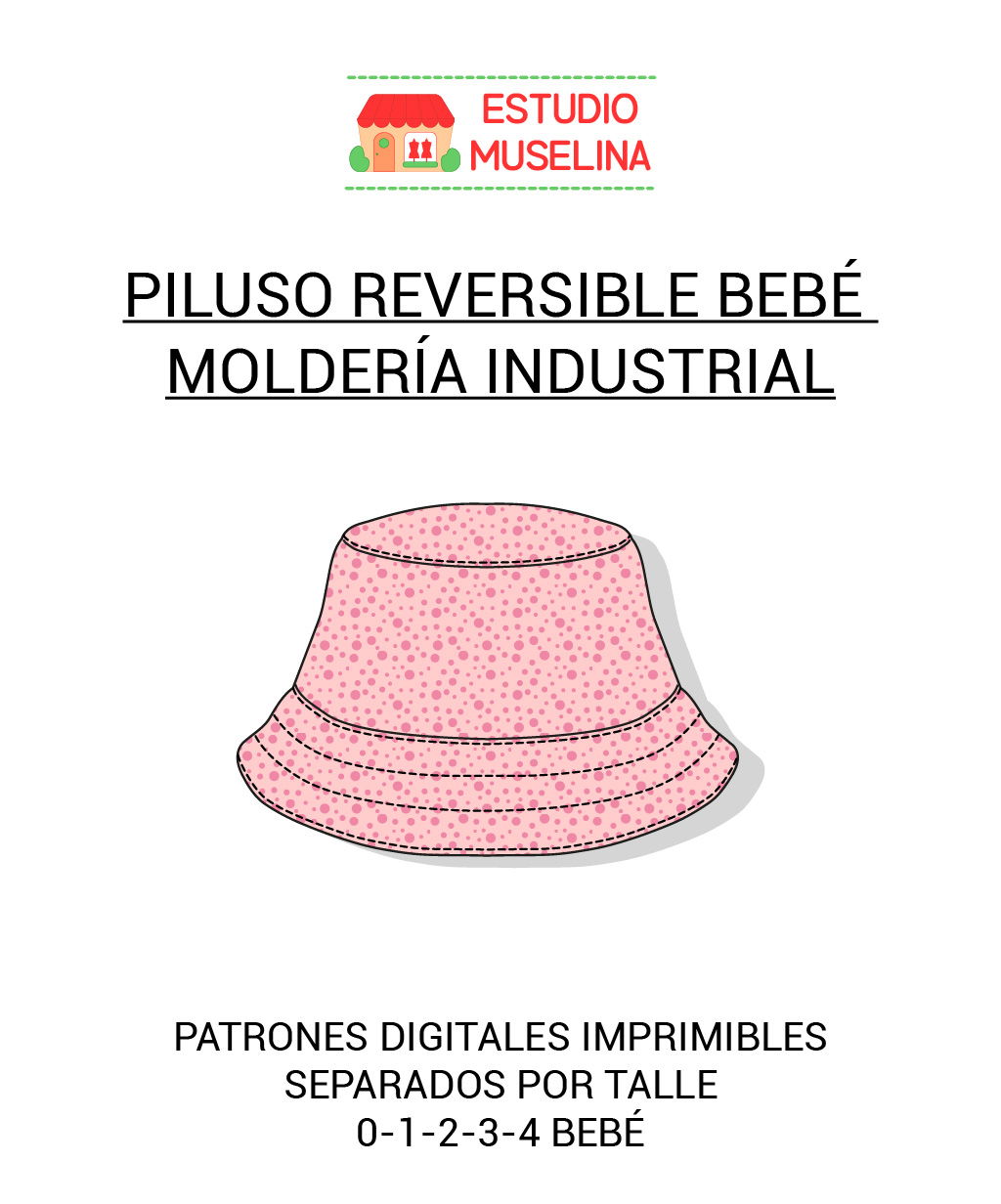Molde digital para confeccionar un gorro piluso para bebé, incluye 5 talles todos separados, (NO están agrupados). Luego de imprimir y armar el plano de hojas, se recortan todos y ya están listos para armar la tizada, cada molde lleva su nomenclatura, nombre de pieza, talle, hilo, piquetes, etc... como corresponde a una MOLDERÍA INDUSTRIAL. Si se imprimen en hojas de buen grosor, sirven para muchas tizadas !! . Es ideal para emprendedores.